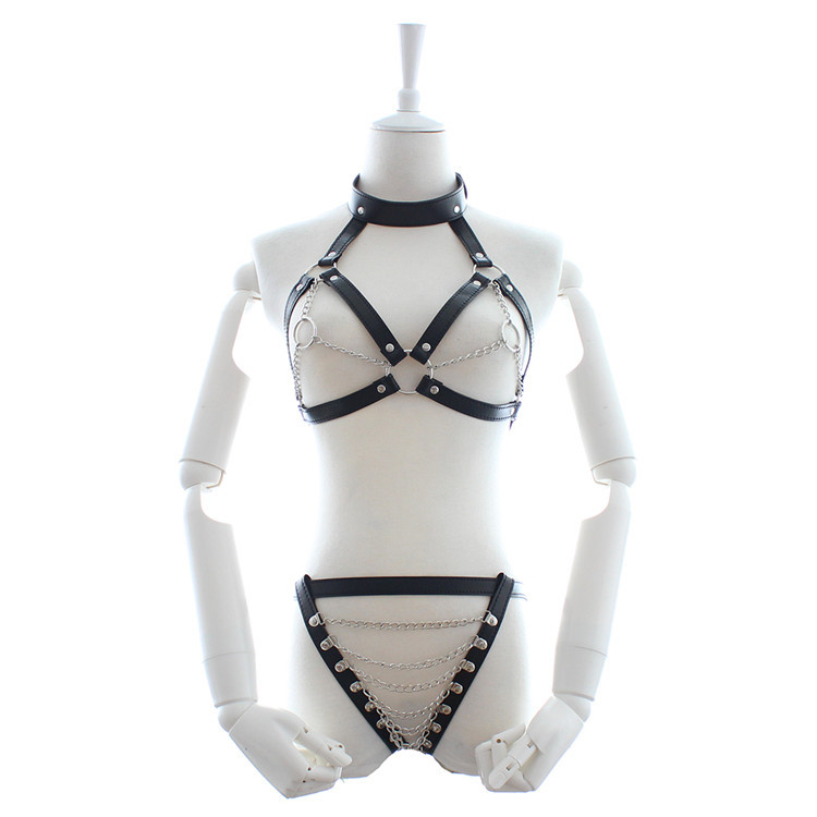 Custom leather clothing chain flirt offbeat appliances bound neck underwear pants clothes fun supplies
