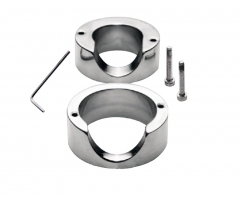 If only steel can contain your mighty cock, then utilize the thick, heavy walls of this immense stainless ring to trap your rod and increase your pleasure. The two sides of the cock ring interlock to trap you inside, with a hole to allow the scrotum to hang free. The weight of the cock ring provides resistance as your balls contract, for an incredibly pleasurable sensation. The devious device locks together with a single screw on each side, for an ultra secure fit. Opens and closes with the provided hex key.